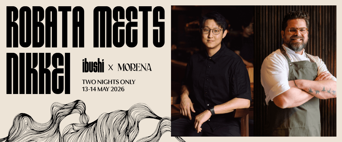 Ibushi x Morena: For two exclusive nights only, two masters come together over fire. Experience a 7-course sharing menu of Japanese robata and Nikkei-Latin flavours by Chefs Chris Kim and Alejandro Saravia.